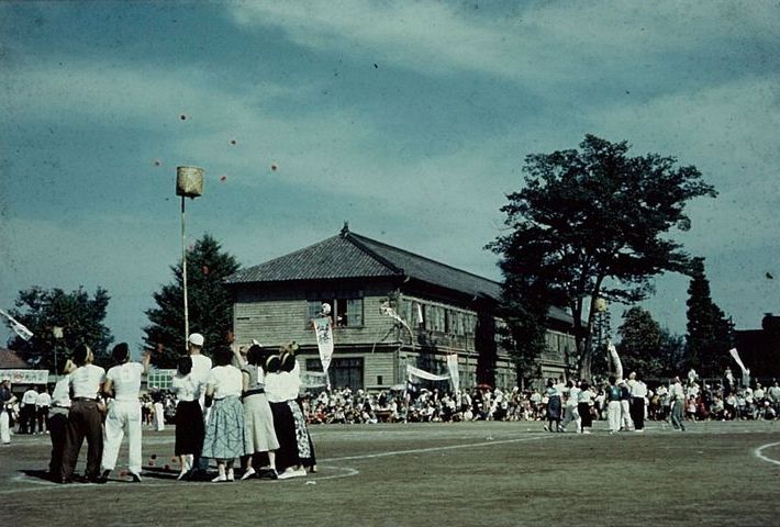 民踊・ロの字型校舎の一部(昭和29年10月)