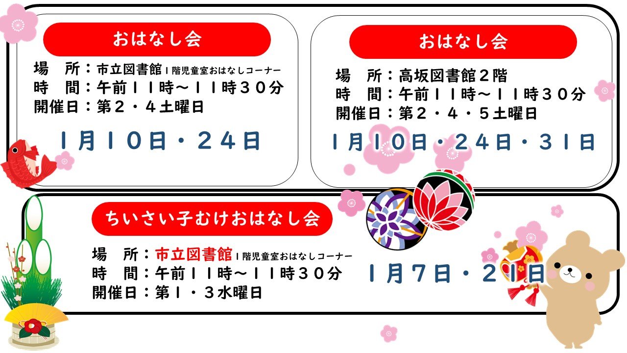 - 1月のおはなし会・映画会・朗読会・展示室